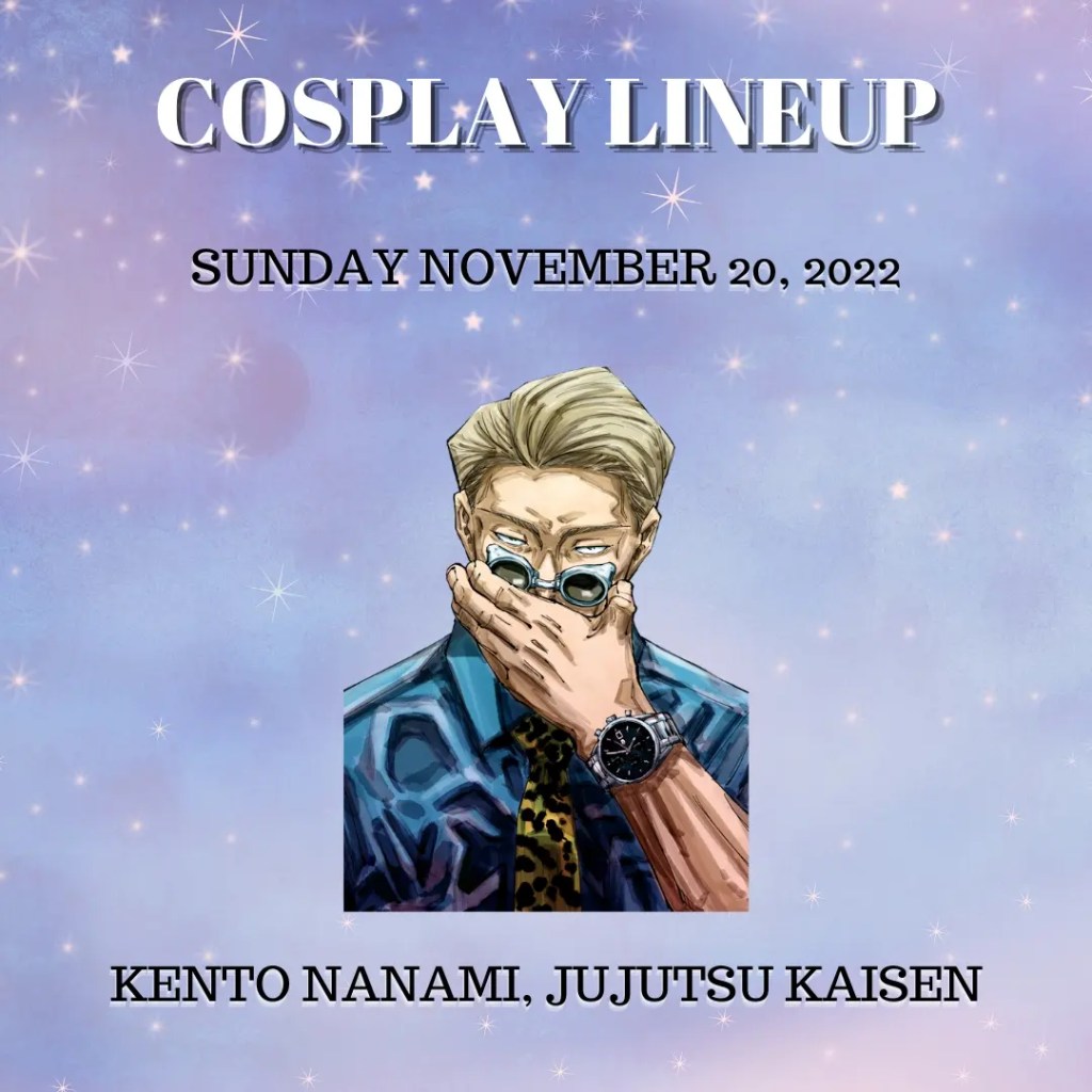 Here’s my cosplan list for every day of AnimeNYC. Friday: Yor Forger, Saturday: Yumichika Ayasegawa, Sunday: Kento Nanami. Cosplans are always subject to change.